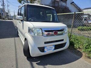 ホンダ N-BOX 660 G Lパッケージ ローダウン社外16アルミ社外LEDテールサイドstepリアウイングレザー調カバーフジツボマフラー